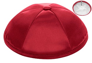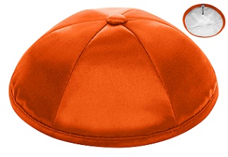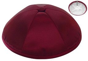 Our Deluxe Satin kippot are lined with a white lining and are made with six panels and have a button on top, they have an eyelet in the lining for a clip to keep your kippah in place. Personalization is included with a minimum order of 12