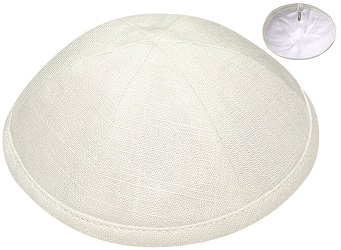 Our Linen kippot are lined with a white lining and are made with six panels and have a button on top, they have an eyelet in the lining for a clip to keep your kippah in place. Personalization is included with a minimum order of 24